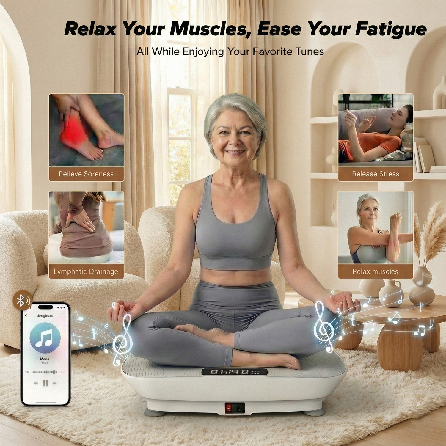 Low: Yoga Stretch Mode – Enhances flexibility and recovery, simulating dynamic yoga